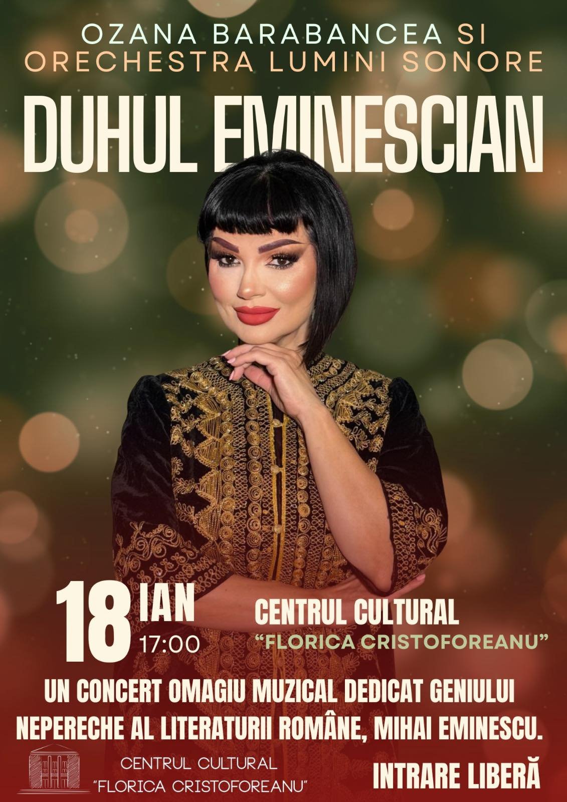 Pe 18 ianuarie, de la ora 17:00, la Centrul Cultural „Florica Cristoforeanu” din Râmnicu Sărat, sunteți invitați la un eveniment de suflet, unde muzica devine poezie, iar poezia capătă glas. Ozana Barabancea, alături de Orchestra Lumini Sonore, vă dă întâlnire la concertul „Duhul eminescian”, un omagiu emoționant dedicat marelui poet național Mihai Eminescu. Publicul va […]
