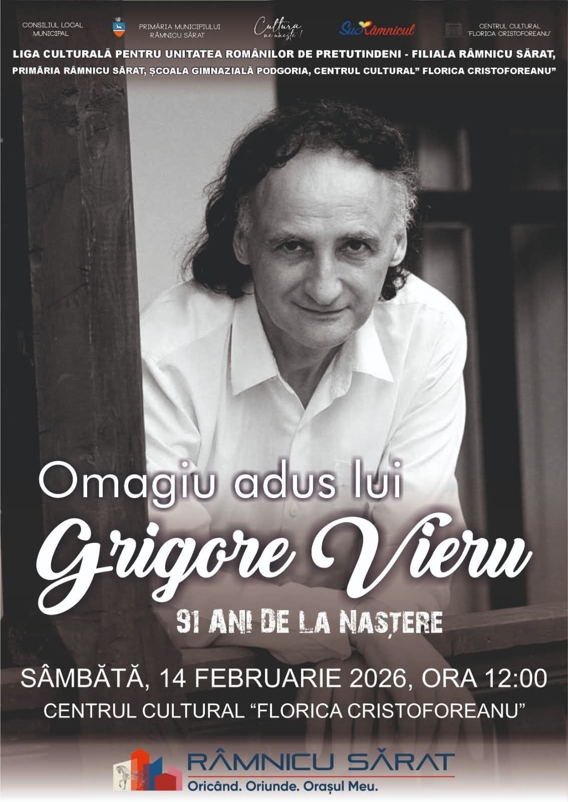 Vă invităm sâmbătă, 14 februarie 2026, de la ora 12:00, la un moment de suflet dedicat memoriei poetului Grigore Vieru